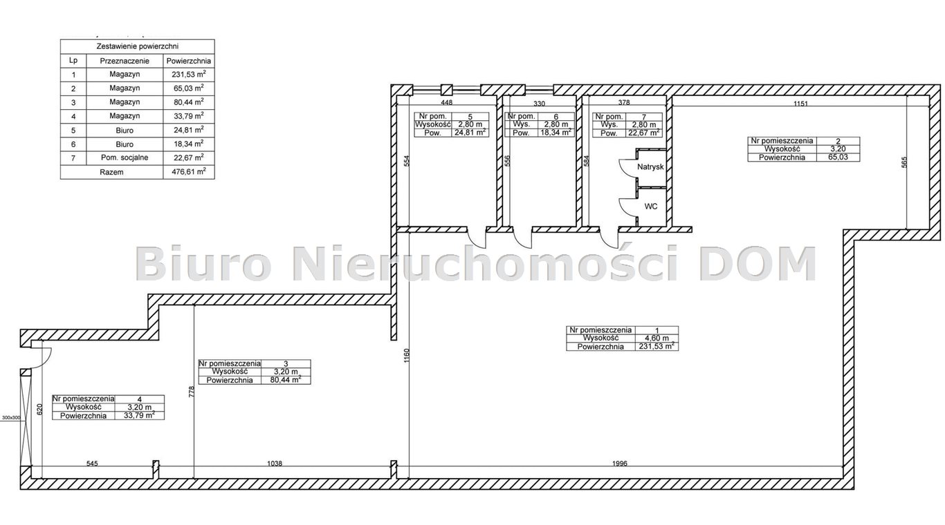 Do wynajęcia - hala produkcyjno-magazynowa w Częstochowie, dzielnica Tysiąclecie Oferuję wynajem nowoczesnej i funkcjonalnej hali o powierzchni 476,61m², zlokalizowanej w dogodnym miejscu w dzielnicy Tysiąclecie. Istnieje możliwość powiększenia o pow. 261m2 Nieruchomość po remoncie (nowe wykładziny w pomieszczeniach biurowych oraz oświetlanie) Parametry nieruchomości: Powierzchnia całkowita: 476,61 m² Układ: 7 pomieszczeń, w tym: 1. największa sala - 231,53 m² 2. magazyn 65,03m2 3. magazyn 80,44m2 4. magazyn 33,79m2 5. biuro 24,81m2 6. biuro 18,34m2 pomieszczenia socjalne o pow.22,67m2 pomieszczenia biurowe i socjalne w bardzo dobrym stanie, po remoncie hala czysta zadbana wysokość od 4m do 5,50m Hala parterowa. Dobrze izolowana. Posadzka bezpyłowa, epoksydowo- żywiczna. Gazowe C.O. zarówno hali jak i pomieszczeń biurowych. Nagrzewnice. Własna stacja transformatorowa o mocy 630 kw. Hala doświetlona świetlikami dachowymi. Dobry dojazd dla Tirów Atuty obiektu: teren ogrodzony i całodobowo monitorowany swobodny dostęp do obiektu duży, wygodny parking dla pracowników i klientów cena 23zł/m2 netto Idealna propozycja pod działalność produkcyjną, magazynową lub usługową. Oferta wysłana z systemu BCK Galactica |